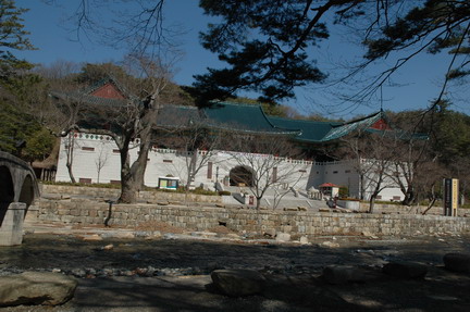 | 영축총림 불보종찰 통도사의 일주문 앞에 박물관 건물이 위치하고 있어 전통사찰 및 자연과 친근한 조화를 이루고 있다.