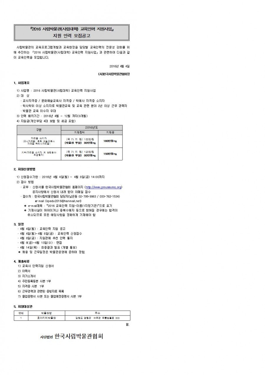 2016 교육인력 지원사업 교육인력 모집공고 (호야지리박물관)
