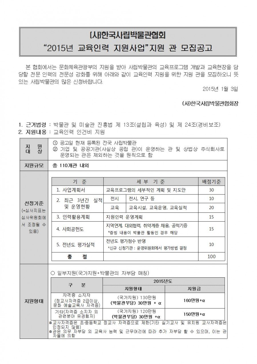 2015년 교육인력 지원사업”지원 관 모집공고