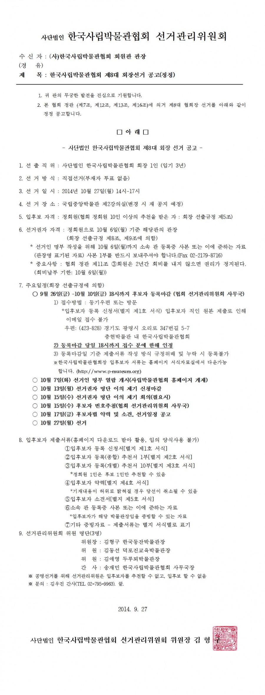 한국사립박물관협회 제8대 회장선거 공고(정정)