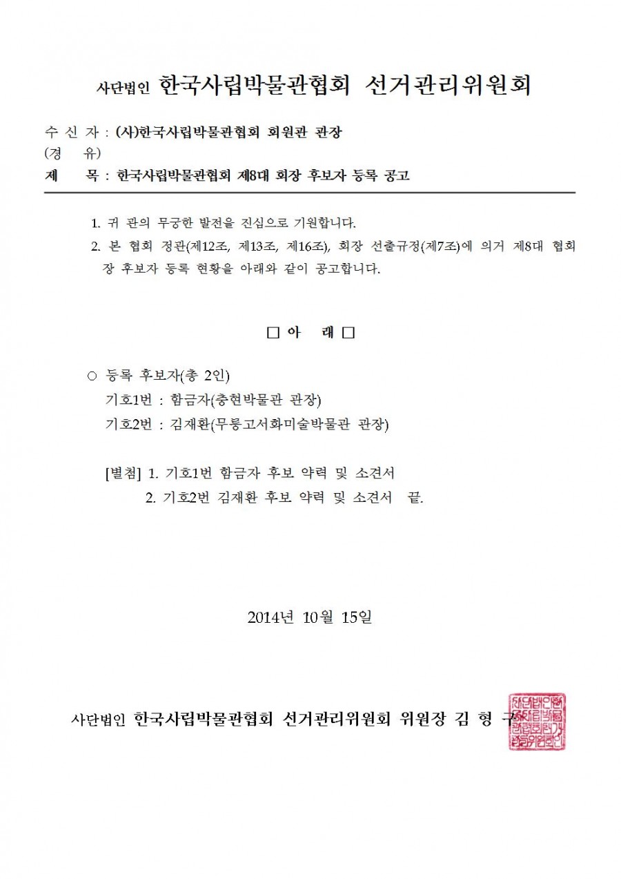 제8대 회장 후보자 등록 결과 공고