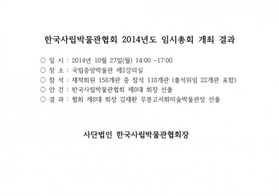 한국사립박물관협회 2014년도 임시총회 개최 결과 페이지 정보 작성자 관리자 작성일14-10-28 14:42 조회42,056회 댓글0건 관련링크 이전글 다음글 목록 본문 댓글목록 등록된 댓글이 없습니다. 이전글 다음글 목록