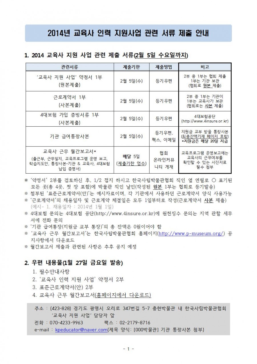 2014 교육사 지원 사업 관련 제출 서류-1차.hwp