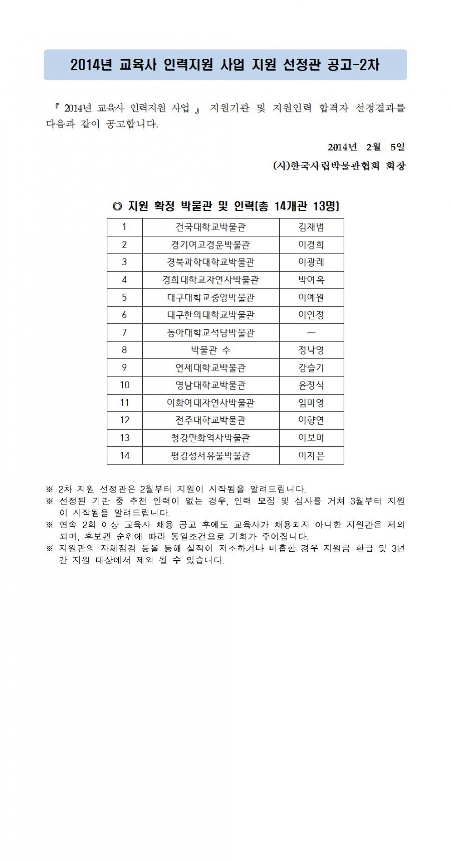 『 2014년 교육사 인력 지원사업 』 지원기관 선정 공고 - 2차 페이지 정보 작성자 관리자 작성일14-02-05 14:10 조회40,922회 댓글0건 관련링크 이전글 다음글 목록 본문 댓글목록 등록된 댓글이 없습니다. 이전글 다음글 목록